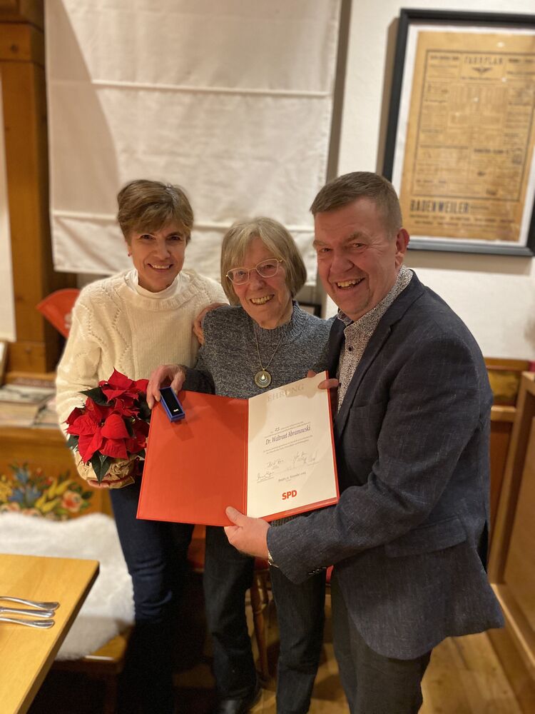 Der SPD Ortsverein Staufen konnte abermals ein Mitglied zu einer langjährigen Mitgliedschaft beglückwünschen. Genossin Waltraud Abramowski wurde in einer feierlichen Runde für 25 Jahre Mitgliedschaft geehrt.